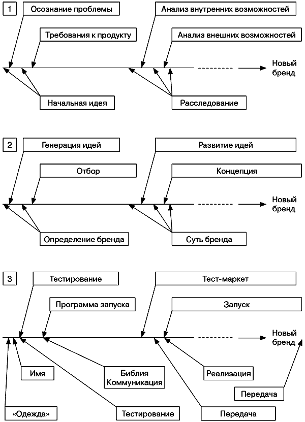 Рис. 6.4. Подробная схема сочетания создания нового продукта и разработки бренда