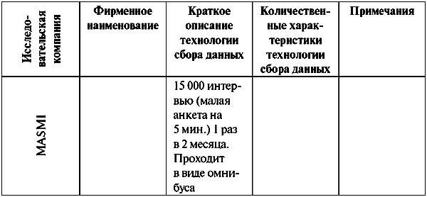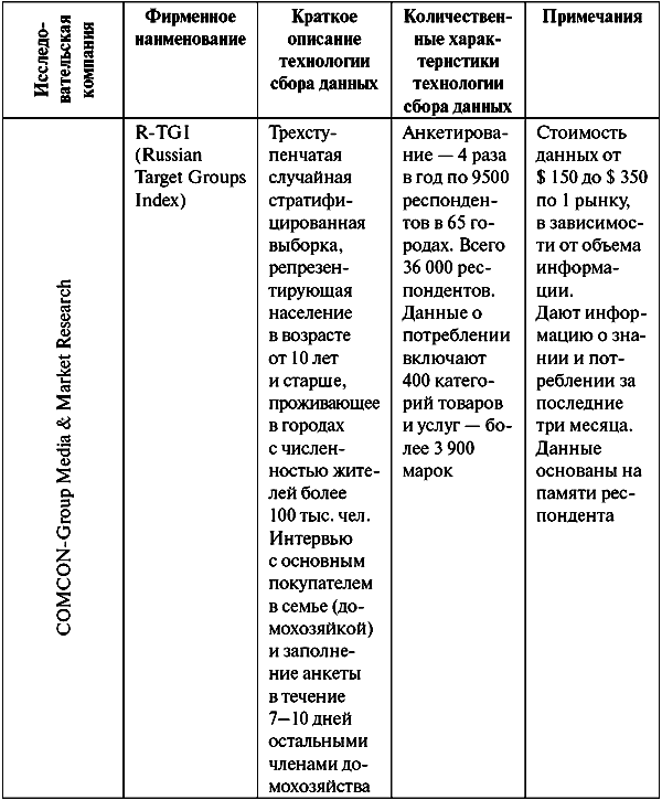 Таблица П13. Синдикативные исследования потребителей (Россия, 2005 г.)