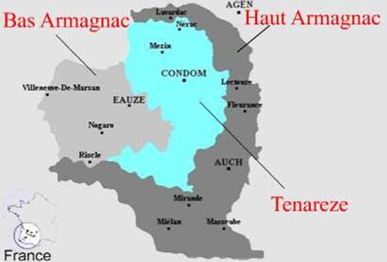Арманьяк Арманьяк — старейший виноградный бренди Франции, первый по уровню почтения, проявляемому к нему ценителями, и второй после коньяка по степени известности. Арманьяк, будучи менее известным и популярным, чем коньяк, является более древним напитком - первые упоминания о нем относятся к XV веку, а первая продажа датируется 1411 годом. Арманьяк производят на базе местного белого вина, на юго-западе Франции в провинции Гасконь. По традиции его получают из тех же сортов винограда, что и коньяк. Несмотря на то, что законом определено двенадцать сортов винограда, из которых разрешается делать арманьяк, на самом деле в Гаскони активно используются лишь некоторые из них. Как и в Коньяке, здесь чаще всего: культивируют сорта Уньи Блан, Коломбар и Фоль Бланш, из местных сортов, Бланкет, Мозак, а также Бако 22А - единственного гибрида, применяемого для изготовления крепких спиртных напитков. Правда, в отличие от Коньяка, климат в Арманьяке теплее, что делает виноград в нем слаще, а вино из него выходит крепче. В 1936 году в августе у Арманьяка появился статус А.О.С. (Appellation d'Origine Controlee), который контролирует географическое происхождение напитка, а это означает, что напиток, произведенный за пределами определенной законом территории, не может называться «арманьяком». Кроме того, законодательство предъявляет серьезные требования к используемым сортам винограда, типам почвы, определяя максимальную урожайность, методы дистилляции и многое другое, гарантируя, таким образом, качество арманьяка. Регион производства арманьяка разделяется на три зоны с разными типами почв: Верхний Арманъяк (Haut Armagnac) - известковая; Тенарез (Tenareze) - глинистая, известковая; Нижний Арманъяк (Bas Armagnac) - песчаная. Это лучшая зона для получения арманьяка. Ее можно сравнить с участком Гран Шампань для производства коньяка.