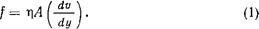 Обычно ŋ называют коэффициентом вязкости или просто вязкостью, f/A = F — напряжением сдвига, dv/dy=G — градиентом сдвига или скоростью сдвига. Если величина ŋ постоянна, жидкость называется ньютоновой, если ŋ — функция F или G, раствор называют неньютоновым. Если жидкость находится не между пластинами, а течет по цилиндрической трубке, трение возникает у стенок трубки; в этом случае скорость максимальна вдоль оси трубки и минимальна у ее стенок (рис. 1, Б), так что градиент скорости становится параболическим, а не линейным. Во всех вискозиметрах, которые применяются в физической биохимии, используют либо параллельные пластины, либо трубки. Условия течения, описанные в рис. 1., А и Б, соответствуют ламинарному течению; оно существует до тех пор, пока величина градиента сдвига не слишком велика; при очень высоких значениях градиента сдвига возникает турбулентность, при этом ситуация становится трудной для трактования как теоретически, так и экспериментально.