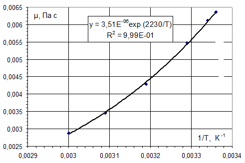 Согласно формуле (1.17) значение энергии активации вязкого течения составляет