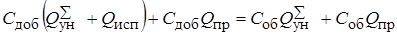 При работе оборотной системы часть воды теряется: с испарением при охлаждении Q исп; капельным уносом Q ун; уносом части воды с продуктом производства Q п.п; продувкой системы Q пр; утечками через неплотности Q ут; со сбросом части воды, которая не могла использоваться повторно Q сбр. В соответствии с материальным балансом эти потери возмещаются добавкой чистой воды из источника. В общем случае: