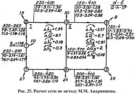 Таблица 16 Пример гидравлического расчета сети по методу В.Г.Лобачева− Х.Кросса.