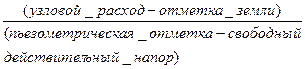 По результатам расчёта водопроводной сети определяем действительные пьезометрические отметки П д во всех узлах сети для каждого расчётного случая. По отметкам П д определяем действительные свободные напоры Н д во всех узлах, а также высоту ВБ и требуемый напор насосов. Пьезометрические отметки во всех узлах сети определяем следующим образом: