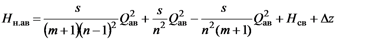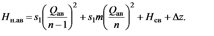 Требуемое количество параллельно уложенных водоводов n, обеспечивающих расход Q ав при выходе из строя одного водовода, можно определить так. Определим напор насоса при работе всех водоводов: