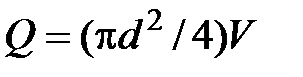 где 5. Добавляются сосредоточенные расходы к узловым расходам. Следует заметить, что пункты 1-5 выполняются при расчете водопроводных сетей населенных пунктов. Для сетей промышленных предприятий отборы воды являются сосредоточенными, поэтому гидравлический расчет начинается с выполнения п. 6. 6. Предварительно распределяются расходы по участкам сети. Распределение выполняется при соблюдении следующего условия: сумма расходов воды, подходящих к каждому узлу, равна сумме расходов воды, отходящих от узла. Распределение расходов воды начинается от диктующей точки, т.е. конечной точки подачи воды. Перед распределением расходов необходимо наметить направление потоков в сети. 7. Определяются диаметры труб участков сети. Эта операция является одним из наиболее ответственных элементов расчета сети. Диаметры труб отдельных участков сети следует устанавливать в зависимости от расчетного расхода воды, проходящего по данному участку. Объемный расход воды, диаметр и средняя скорость движения воды связаны между собой уравнением неразрывности: