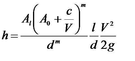 По существу, эта формула является формулой Дарси-Вейcбаха. Коэффициенты A 1, A o, с, m зависят от материала и внутреннего покрытия труб и приведены в приложении 10. В формуле (4.31) d – внутренний (расчетный) диаметр. При использовании выражения (4.31) поправочный расход определяется по формуле