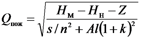 При k = 0, то есть в том случае, когда весь расход воды можно использовать на пожаротушение,