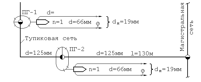 Рис. 8.7. Схема испытания водопроводной сети на водоотдачу