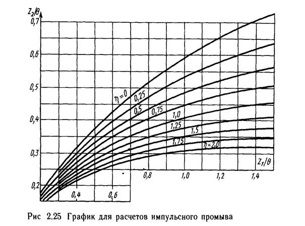 где Dud — диаметр соответственно вакуум-стояка и клапана для впуска воздуха: Уравнение (2.25) прямого решения не имеет. На рис. 2.25 приведены графики зависимости Z2/θ = f(zi/θ; η).