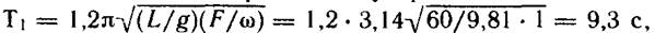 где z1 и z2 — полуамплитуды колебания уровня жидкости в вакуум-стояке, м; Т1 — продолжительность первого полупериода колебания уро вня жидкост и в вакуум-стояке (см. рис. 2.9):