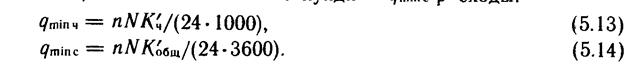 где qcp с — среднесуточный расход в час со средним водопотреб-лением, л/с; qmaxc — максимальный секундный расход, л/с. Аналогичным образом могут быть определены минимальный часовой qminч и минимальный секундный qminc расходы: