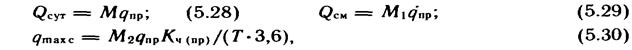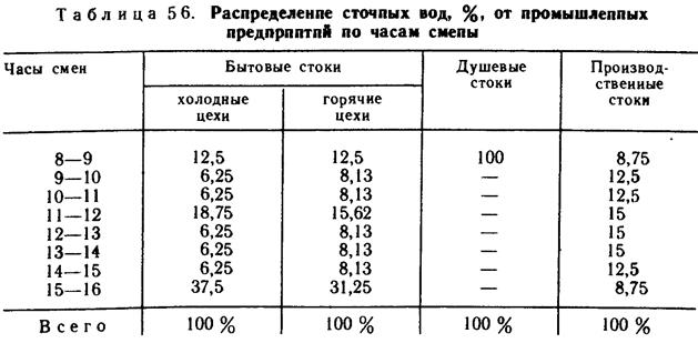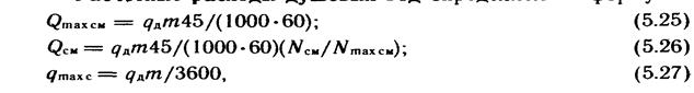 где N\, N2 — число работающих в сутки в холодных и горячих цехах соответственно; N3, N4 — то же, в смену; N5, — то же, в смену с максимальным числом работающих; Qc — расход за смену, м3/см; Расчетные расходы душевых вод определяем по формулам