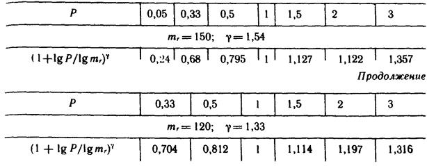 Ниже приведены вычисленные значения (1 + lgP/lgmr)T для указанных Р: