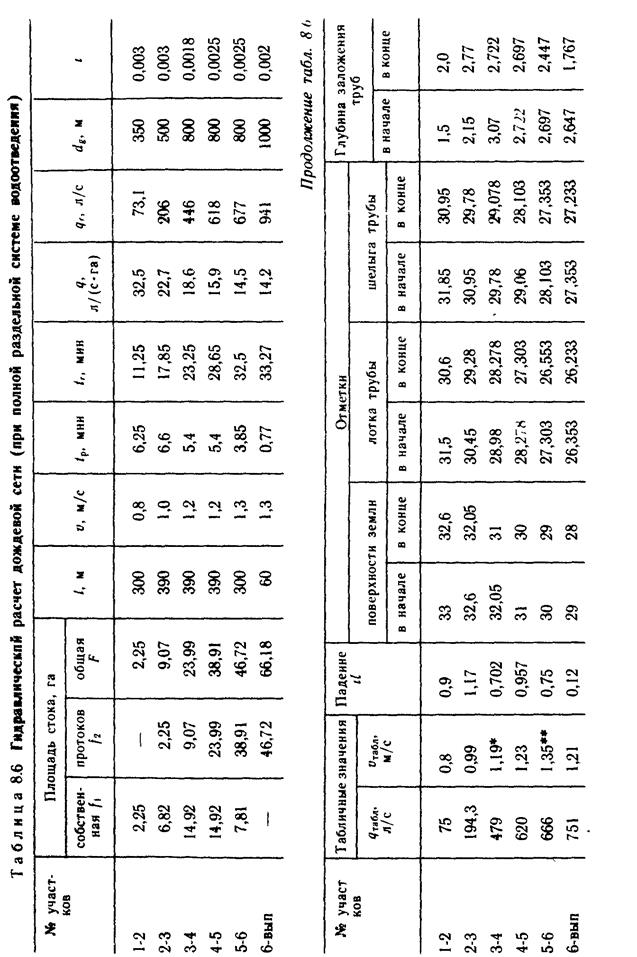 здесь /сап — длина участка лотков, м; vcan — расчетная скорость течения на участке, м/с; tр — продолжительность протекания дождевых вод по трубам до рассчитываемого сечения: