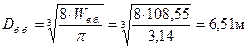 Диаметр бака водонапорной башни, м, определяется из условия, что высота его составляет половину диаметра по формуле: