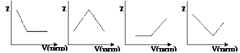 14.Какие из проводников являются проводниками первого рода? а) растворы электролитов; б) металлы; в) газы; г) электроны. 15. Какой вид имеет кривая кондуктометрического титрования раствора гидроксида калия раствором муравьиной кислоты по схеме: КОН +HCOOH → а) б) в) г)