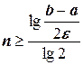 Метод половинного деления дает простой и удобный алгоритм уточнения корней с любой наперед заданной точностью. Он требует от функции f(x) легко проверяемых свойств: непрерывности на отрезке отделения корня и разницы знаков на его концах. Количество шагов приближения зависит лишь от отрезка (a; b) и заданной точности . Его можно рассчитать следующим образом: