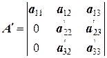 Преобразование квадратной матрицы в треугольную можно выполнить, воспользовавшись одним из свойств определителя: если одну из строк (или столбцов) умножить на любое число и сложить (вычесть) с другой строкой, то от этого определитель не изменится. Например, умножив вторую строку на коэффициент k1, а третью – на коэффициент k2 и порознь сложив их с первой, получим эквивалентную матрицу: