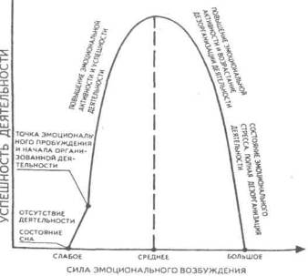 Рис. XII.7. Зависимость успешности деятельности человека от силы его эмоционального возбуждения (по Д.О. Хеббу) Согласно биологической теории эмоций, положительные эмоции возникают в том случае, если обратная информация совпадает или превышает ожидаемую, и наоборот, недостаток об- ратной информации порождает отрицательные эмоции. Исследования психофизиологии эмоций (П.В. Симонов) показывают, что в ряде случаев знания, информиро'ван-