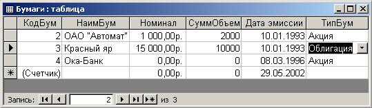 Рис. 10.6. Ввод данных в таблицу Бумаги