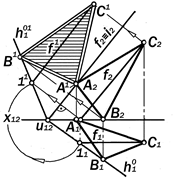 Р ис.11.16. Определение натуральной величины треугольника АВС для вычисления его площади и других метрических характеристик