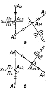 Рис. 11.25. Замена одной плоскости проекций для преобразования исходных проекций точки