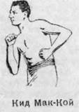 В числе защитных средств Кида Мак-Коя был приём, известный под названием «брейк граунд» (аагл. «переменить позицию»). Этим приёмом он пользовался, уходя от стремительной атаки противника, когда ему требовалось быстро выйти из сферы досягаемости ударов своего партнера. «Брейк граунд» представляет собой быстрый скачок назад. Кид Мак-Кой выполнял его следующим образом: отступя немного назад правой ногой, он переносил на неё тяжесть тела и, оттолкнувшись ею, отпрыгивал назад. При этом его левая нога касалась пола первой как раз ка том месте, где до этого находилась правая. После прыжка его правая нога занимала свое обычное положение в боевой стойке. * * * «Брейк граунд» является типичной защитой аутфайтера, стремящегося постоянно сохранять дальнюю дистанцию. Этой защитой он обычно пользуется в тех случаях, когда противник атакует слишком решительно и требуется быстро устраниться от нежелательного столкновения с ним. Отскакивая назад, боксёр рассчитывает дистанцию сообразно длине атакующего удара противника. В практике современного бокса очень популярен приём, представляющий собою комбинацию сайд-степа и «брейк граунда». Начинается этот приём как обычный «брейк граунд», но последний шаг правой ногой делается не назад, а выпадом вправо. Все эти движения боксёр проводит слитно, приходя в конце приёма в положение чистого сайд-стела. Вариантам этого приёма является такой же выпад вправо, но, производя его, боксёр выпрямляет правую ногу и ставит левую впереди правой, быстро переходи, таким образом, в обычное положение боевой стойки и получая -возможность маневрировать и контратаковать.
