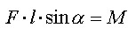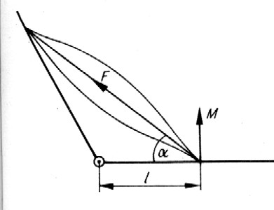Рис.5. Действие мускульной силы (F) на сустав как вращательный момент (M). (l – длина рычага, α – угол междувектором мускульной силы и рвчагом.