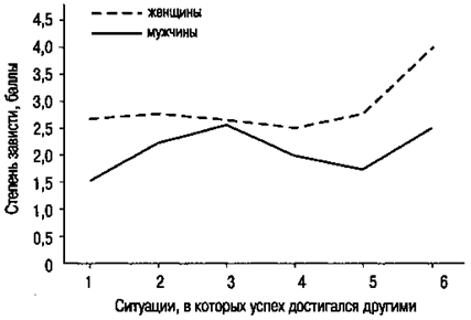 (1 — адаптивность; 2 — конфликтность; 3 — карьера; 4 — достижение успеха; 5 — работа; 6 — жилье) Рис. 4.8. Проявление зависти к достижениям другого в различных жизненных сферах