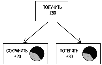 Сначала испытуемого просили представить, что он получил некоторую сумму, в данном примере – 50 фунтов. Затем участнику предлагали выбрать между гарантированным исходом и игрой с помощью «колеса фортуны». Если колесо остановится на белом, испытуемый «получит» всю сумму; если на черном – не получит ничего. Гарантированный исход равнялся ожидаемой стоимости игры – в данном случае выигрышу 20 фунтов. Как видно, гарантированный исход можно представить в виде двух рамочных конструкций: как сохранение 20 фунтов или как потерю 30 фунтов. Объективно исходы полностью идентичны в обеи х рамках, и связанный с реальностью экон ответил бы одинаково в обоих случаях – выбирая или гарантированный исход, или игру, независимо от рамочной конструкции; но мы уже знаем, что мозг гумана не связан с реальностью. Решение – согласиться или отказаться – принимается под воздействием слов; и можно ожидать, что Система 1 будет склоняться к гарантированной сумме, обозначенной рамкой «СОХРАНИТЬ», и отказываться от того же варианта, обозначенного рамкой «ПОТЕРЯТЬ». Эксперимент включал множество попыток; каждый испытуемый давал ответы в нескольких задачах на выбор, сформулированных в рамках «СОХРАНИТЬ» и «ПОТЕРЯТЬ». Как и ожидалось, все 20 испытуемых продемонстрировали эффект фрейминга: они гораздо охотнее выбирали гарантированную сумму в рамке «СОХРАНИТЬ» и с большей готовностью соглашались на игру в рамке «ПОТЕРЯТЬ». Однако не все результаты были одинаковы. Одни участники в большой степени зависели от рамки, установленной формулировкой. Другие чаще делали одинаковы й выбор, независимо от рамки, – как и должен поступать связанный с реальностью человек. Авторы соответственно распределили испытуемых по шкале и придумали эффектное название: индекс рациональности. Во время принятия решения регистрировалась активность мозга испытуемого. Позже все попытки были разбиты на две категории: 1. Попытки, в которых выбор участника соответствовал рамке: • выбор гарантированной суммы в версии «СОХРАНИТЬ»; • выбор игры в версии «ПОТЕРЯТЬ». 2. Попытки, в которых выбор не соответствовал рамке.