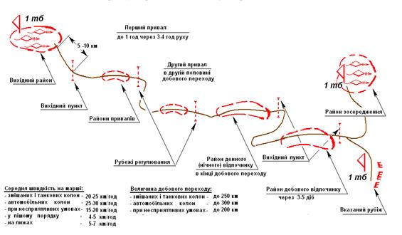 Райони та рубежі, що призначаються під час здійснення маршу