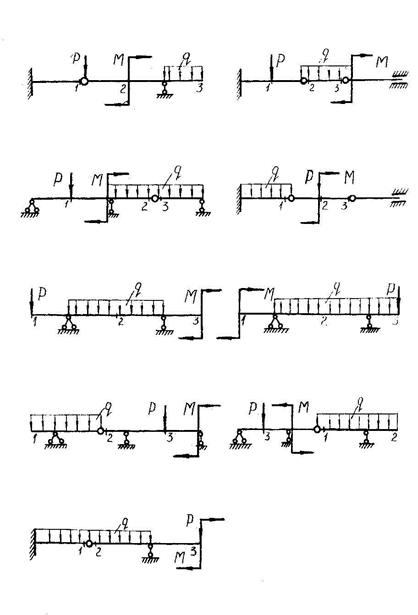 Для определения вертикального перемещения сечения 1 необходимо построить эпюру от действия внешней нагрузки (рис. 4.2, б) и эпюру от действия силы , приложенной вертикально в точке 1 (рис. 4.2, в). При определении угла поворота сечения в точке 2 строится эпюра от действия единичного изгибающего момента , приложенного в точке 2 (рис. 4.2, г). Построение указанных эпюр моментов проводим с помощью метода сечений, предварительно определяя реакции, возникающие в опорах (см. контрольную работу №1). При определении на участках площадей эпюры Мр и положения их центров тяжести воспользуемся табл. 4.2, в которой приведены наиболее часто встречающиеся случаи. Более сложные фигуры могут быть получены из приведенных путем их разбиения на простые.