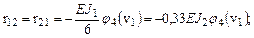 Для нахождения формы потери устойчивости, соответствующей найденным значениям критических нагрузок, подставим значения коэффициентов rij в первое или второе уравнения системы канонических уравнений (8.1) МП ( φ 2(v1=2, 27)=0, 8152; φ 4(v1)=0, 9108; η 2(v1)=0, 4814; η 1(v2=2, 07)= – 0, 7573; r11=2, 837EJ2; r12=-0, 3031EJ2; r22=0, 0324 EJ2 ).