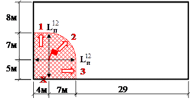 1.2.2. Определяем форму площади пожара в левом помещении. Левый дверной проем находится в фактической площади пожара. Путь, пройденный огнем через левый дверной проем: