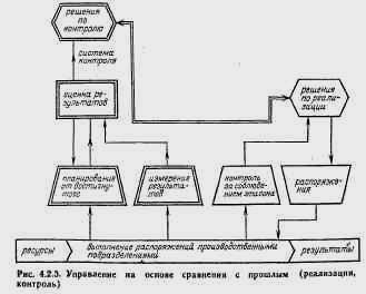 Сложность управления возросла также благодаря процедуре контроля (она представлена на рис. 4.2.3). К качественной оценке того, как подразделение справляется с поставленными перед ним задачами, на стадии контроля добавляется также количественное измерение выполненной работы, Чтобы облегчить эту задачу, на основе прошлого опыта определяются нормы, квоты и стандарты, подкрепляющие субъективные оценки руководителя. Разница между ожидаемыми и фактическими результатами порождает контрольный сигнал, т. е. решение, которое тут же переводится на язык распоряжений. Если управление реализацией решения носит качественный характер, то распоряжения к действию характеризуются контролем и качественно, и количественно. Более того, наличие отчетов об эффективности позволяет периодически пересматривать квоты и стандарты. Таким образом, цикл контроля не подменяет, а скорее дополняет цикл реализации. Субъективная оценка качества выполнения работы и отношение к этому со стороны персонала являются существенным дополнением количественной оценки выполненной работы. Эта довольно простая система явилась важным этапом в развитии формализованного аспекта управления. Она ввела объективное измерение эффективности работы, дала инструмент для определения характера и места имеющихся слабостей, а также метод сравнения эффективности работы различных подразделений фирмы. Сегодня традиционная система контроля является одним из существенных (хотя, как будет сказано ни- же, и устаревших) инструментов управления в крупномасштабных и сложных фирмах.