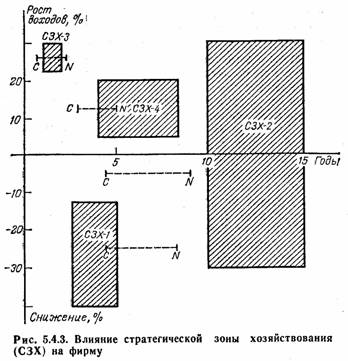 Из предыдущих рассуждений можно сделать два заключения. Первое, решение реагировать должно приниматься исходя лишь из одного критерия: расходов на реакцию, снижения доходов или возможной прибыли. Скорее, такое решение следует принимать исходя из того, что могут принести эти расходы, чем обернуться. Используем простой, но полезный прием. При более достоверной информации (особенно на раннем этапе возникновения угрозы) можно использовать и другие приемы. Поступая таким образом, мы не выбрасываем денег на ветер, особенно когда опасность нарастает и возникает соблазн предпринять решительные ответные меры, сколько бы они ни стоили. Второе, выбор противомер в диапазоне от обычной до чрез-вычайной реакции следует делать в зависимости от времени наступления опасности. Разница во времени прослеживается на рис. 5.4.3, на котором представлены результаты анализа опасности и диагностика готовности. Заштрихованные прямоугольники представляют «области вероятного воздействия» на соответствующую стратегическую зону хозяйствования. Прямоугольники, расположенные ниже горизонтальной оси, отражают потенциальные потери доходов, вызванные опасностью, расположенные выше—доходы, связанные с благоприятной возможностью. Высота прямоугольников соответствует размерам вероятных расходов (доходов), основание — вероятному времени, когда воздействие спонтанно возникшего события достигнет критического уровня. Обе величины взяты из табл. 5.4.2.