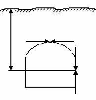Задача.5.5.1. Расчет предельной глубины расположения выработки без крепи (детерминированный метод) Условие задачи Определить максимальную глубину, на какой можно пройти горизонтальную выработку с кровлей в виде свода без установки в ней горной крепи в следующих условиях: - временное сопротивление породы сжатию Rсж = 27 МПа; - объемный вес породы γ = 26 кН/м3; - коэффициент бокового распора КБ = 0, 45; - коэффициент запаса прочности породы К З.ПР. = 2, 5. Решение 1. Расчетная схема (рис. 1).