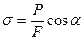 Для определения величины сцепления и угла внутреннего трения горных пород широкое распространение получил метод косого среза (рис. 29). Нагрузка на образец (1) передаётся через цилиндрический шарнир (2), роликовую постель (3) и стальные матрицы(4). Нормальные и касательные напряжения в плоскости среза определяются по формулам;