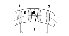 Для однородного проводника плотность тока одинакова по всему поперечному сечению S проводника, поэтому: