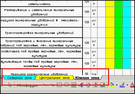 На основу программы заложены технологические карты по возделыванию и уборке сельскохозяйственных культур в условиях Кировской области [1], рекомендации по использованию машинно-тракторного парка при поточно-цикловом методе выполнения механизированных работ в растениеводстве [2] и типовые нормы выработки и расхода топлива на механизированные полевые работы в сельском хозяйстве [3, 4]. Данная программа составлена при использовании пакета программ Microsoft Office, а именно, в программе электронных таблиц Microsoft Excel ХР для IBM PC совместимых компьютеров. Она представляет собой скользящую таблицу с закреплёнными полями: по вертикали – наименование операций, а по горизонтали – вводимые, справочные и расчётные данные, занесённые в соответствующие ячейки программы. Таким образом, мы имеем тесную взаимосвязь всех данных программы между собой построчно. Такая связь ячеек позволяет осуществить быстрый расчёт показателей операций и моментально получить результат. Полученная таким образом таблица распечатывается на принтере. 2 Правила работы с программой Для работы с предложенной программой создатели рекомендуют придерживаться следующей последовательности действий: Включите компьютер При необходимости введите пароль доступа к операционной системе компьютера Через кнопку ПУСК, нажимая на правую кнопку мыши, входим в Проводник. Далее необходимо узнать у преподавателя директорию (путь) к файлу с нашей программой. Перемещайтесь по директориям с использованием мыши, находим файл ЭМТП - Объём механизированных работ.xls Запускаем этот файл быстрым двойным нажатием левой клавиши мыши или клавишей Enter. Перед Вами появится оболочка Microsoft Excel, в которой откроется сводная таблица. Для выбора необходимой агроклиматической зоны достаточно щёлкнуть левой клавишей мыши по нужной вкладке с названием зоны, расположенной в нижнем левом углу экрана. Например, Южная зона (рис. 1).