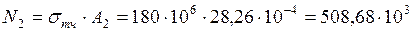 2. Вычислим усилие во втором подвесе, исходя из предельного напряжения стержня – предела текучести (расчет по допускаемым напряжениям) По исходным данным определим площади сечений подвесов