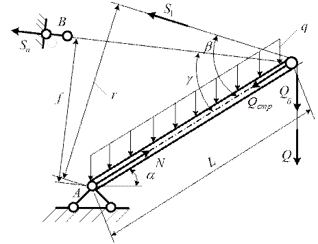На рис. 4.1 представлена расчетная схема стрелы крана. . В расчетной схеме приняты следующие обозначения: