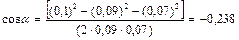 Здесь – угол между векторами и , который может быть найден из треугольника со сторонами , и : . В данном случае во избежание громоздких записей удобно значение вычислить отдельно: . Подставив выражения и в уравнение (3) и вынеся общий множитель за знак корня, получим . (4)
