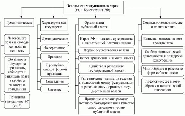 Элементы конституционного строя России закреплены в главе первой Конституции Российской Федерации.