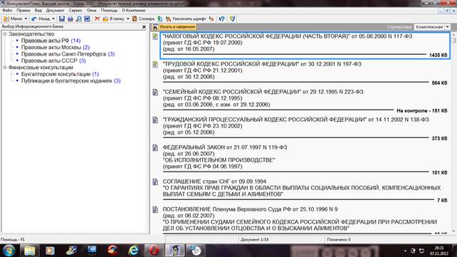 После запуска программы и открытия базы открывается окно «База данных Консультант Плюс», в котором имеется 4 вкладки: Поиск, Папки, Закладки, История.