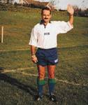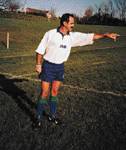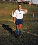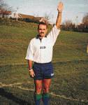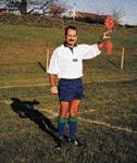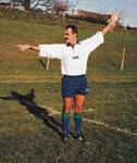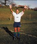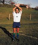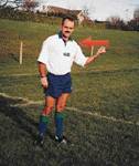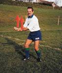 2. Свободный удар. Плечи параллельны боковой линии. Предплечье поднято вертикально, плечо - горизонтально. Рука должна указывать в направлении невиновной команды