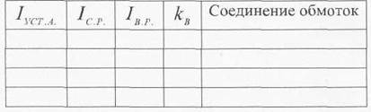 Табл. 1.1 Аналогичные измерения провести при всех значениях тока уставки. 6. По данным опытов определить значение коэффициента возврата ре- ле по выражению: kB 7.Для одной рабочей уставки (IУСТ.А. =) путём пятикратного измерения определить значение погрешности (отклонения) тока срабатывания реле относительной заданной уставки по выражению: