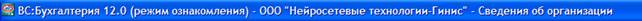 Если все правильно в самой верхней строке главного окна должно появиться название созданной организации.