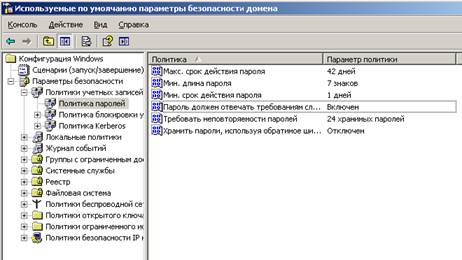 Проблема заключается в том, что пароль, который Вы ввели не отвечает требованиям безопасности. У нас есть два пути: вводить сложный пароль (более 7 знаков и содержать буквы в разных регистрах и цифры) или изменить текущую политику безопасности. Нажмите Пуск > Администрирование > Политика безопасности домена
